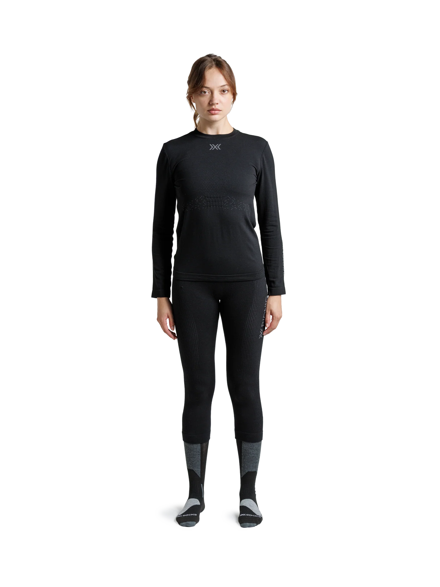 Conquer cold days with natural comfort and thermal precision. The X-BIONIC® MIGHTYWOOL SHIRT LS WMN blends merino fibers with Tentacle Technology to actively manage sweat and regulate temperature. Its 3D Bionic Sphere® System stabilizes your core climate, preventing overheating during intense bursts while retaining warmth during rest. Designed for cold conditions, this shirt empowers you to perform longer, stay dry, and feel focused, delivering unwavering confidence from first chair to last run.